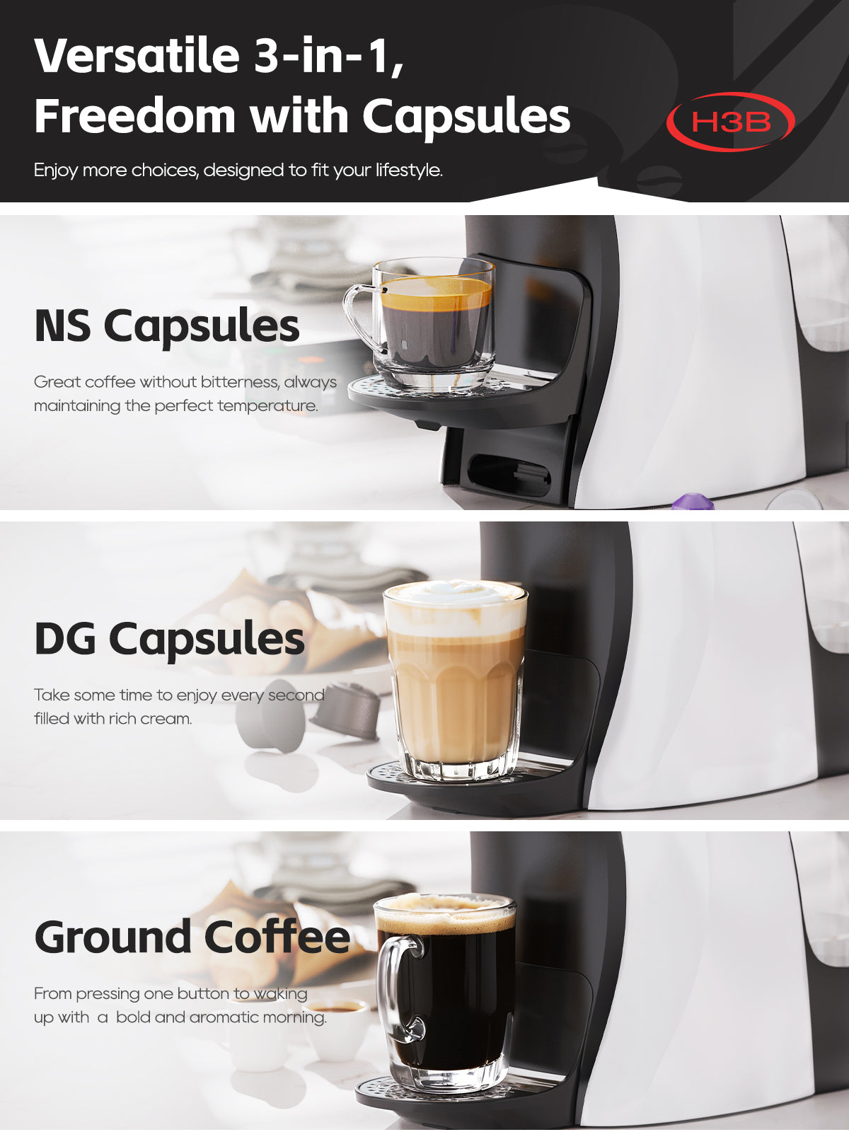 3-in-1 capsule coffee machine for home use