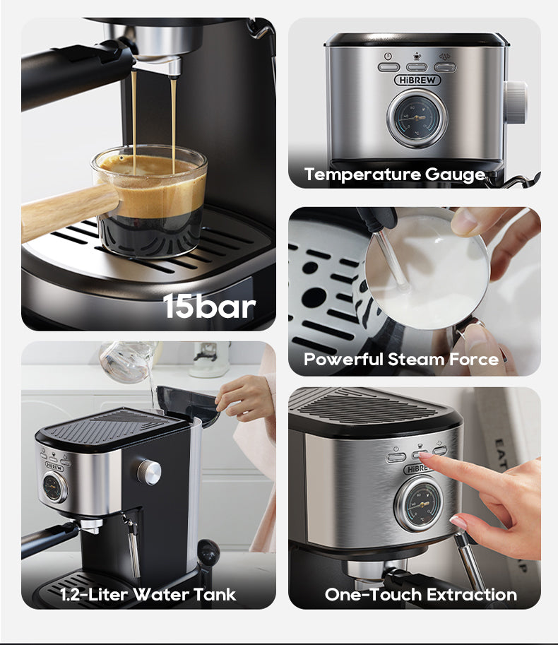 HiBREW H5A Coffee Machine – 15Bar Espresso Maker with One-Touch Extraction & Milk Frother